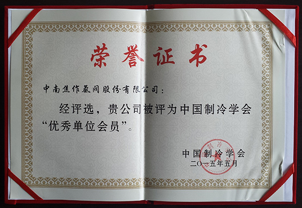 2015年5月28日,中國制冷學(xué)會(huì )單位(團體)會(huì )員大會(huì )在江蘇常州召開(kāi),中南焦作氨閥股份有限公司2015年以良好的企業(yè)形象和的產(chǎn)品質(zhì)量,受到中國制冷學(xué)會(huì )和業(yè)內廣大合作伙伴的好評,被評為中國制冷學(xué)會(huì )2015年度會(huì )員單位。