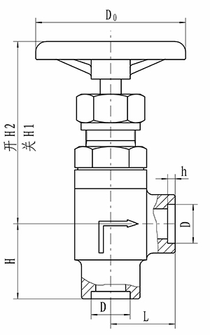 | 閥門(mén)型號 | 公稱(chēng)壓力 Mpa | 公稱(chēng)通徑 DN | L | H | H1 | H2 | D0 | D | h | 重量 kg | |